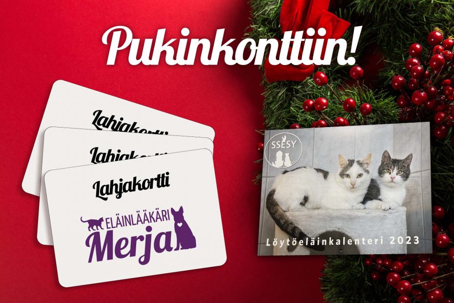 Eläinsuojeluyhdistyksen kalenteri sekä lahjakortit.