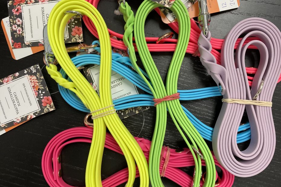 Candyn Kimallekaupan hihnat22.4.202225.4.2022 Ihanat Biothane materiaalia olevat, Candyn Kimallekaupan hihnat piirteissä väreissä. Hinnat 27-30€